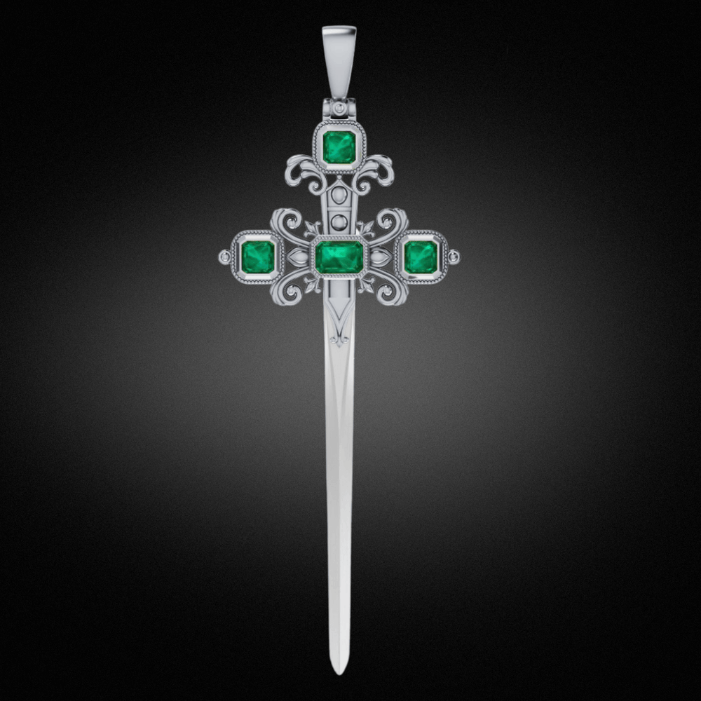 🎄 Brass Emerald Holy Rose Sword Necklace